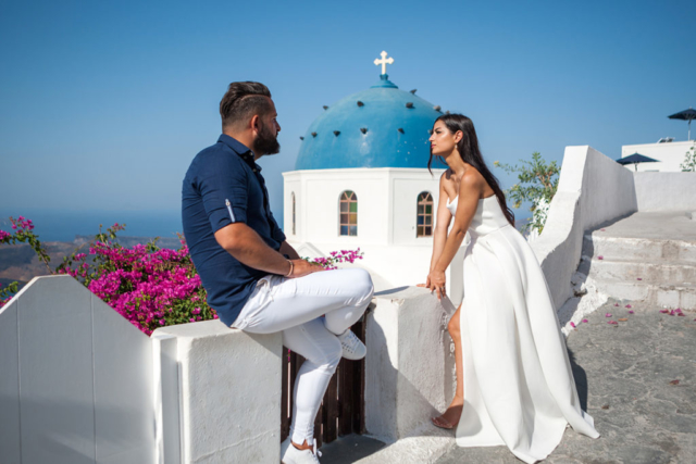 Magi and Gary took last minute a Santorini pre wedding photography on the bests Santorini locations