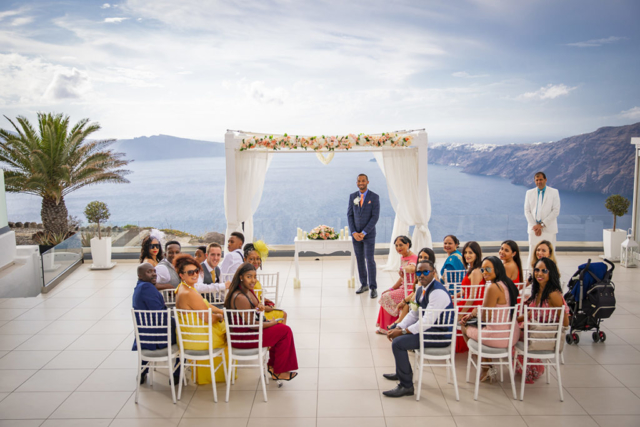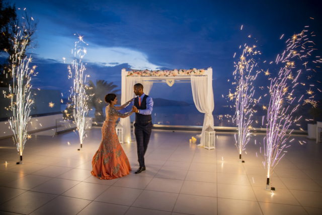 Le Ciel Venue in Santorini is ideal if you have a large wedding party and you’d all like to stay together and enjoy an great evening parting until 1:00AM